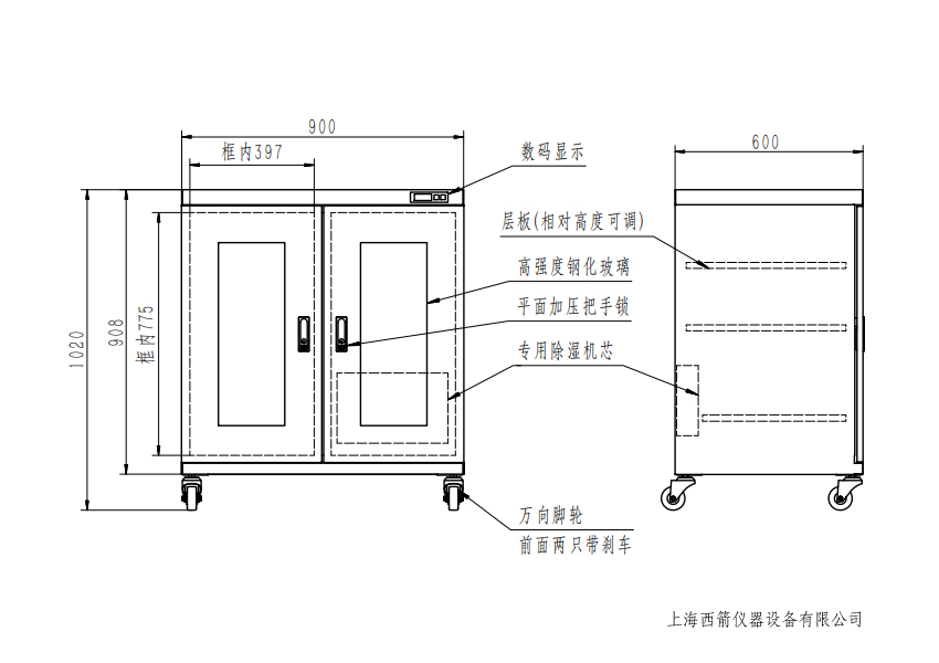 1.西箭品牌防潮箱體選用厚度正1.0mm鋼板制作,鋼板硬度高,重要部件采用正3.0mm鋼板, 箱體結(jié)構(gòu)符合設(shè)計(jì)規(guī)范,結(jié)構(gòu)承重性強(qiáng)。