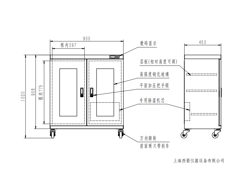 1.西箭品牌防潮箱體選用厚度正1.0mm鋼板制作,鋼板硬度高,重要部件采用正3.0mm鋼板, 箱體結(jié)構(gòu)符合設(shè)計(jì)規(guī)范,結(jié)構(gòu)承重性強(qiáng)。