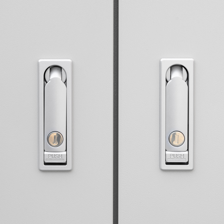 3.防潮箱門(mén)玻璃區(qū)域選用3.0mm鋼化玻璃,防前傾耳式結(jié)構(gòu)設(shè)計(jì)。帶平面加壓把手鎖*體化設(shè)計(jì),有防盜功能。D部安裝可移動(dòng)帶剎車腳輪方便移動(dòng)及固定(防靜電機(jī)型腳輪為防靜電)。