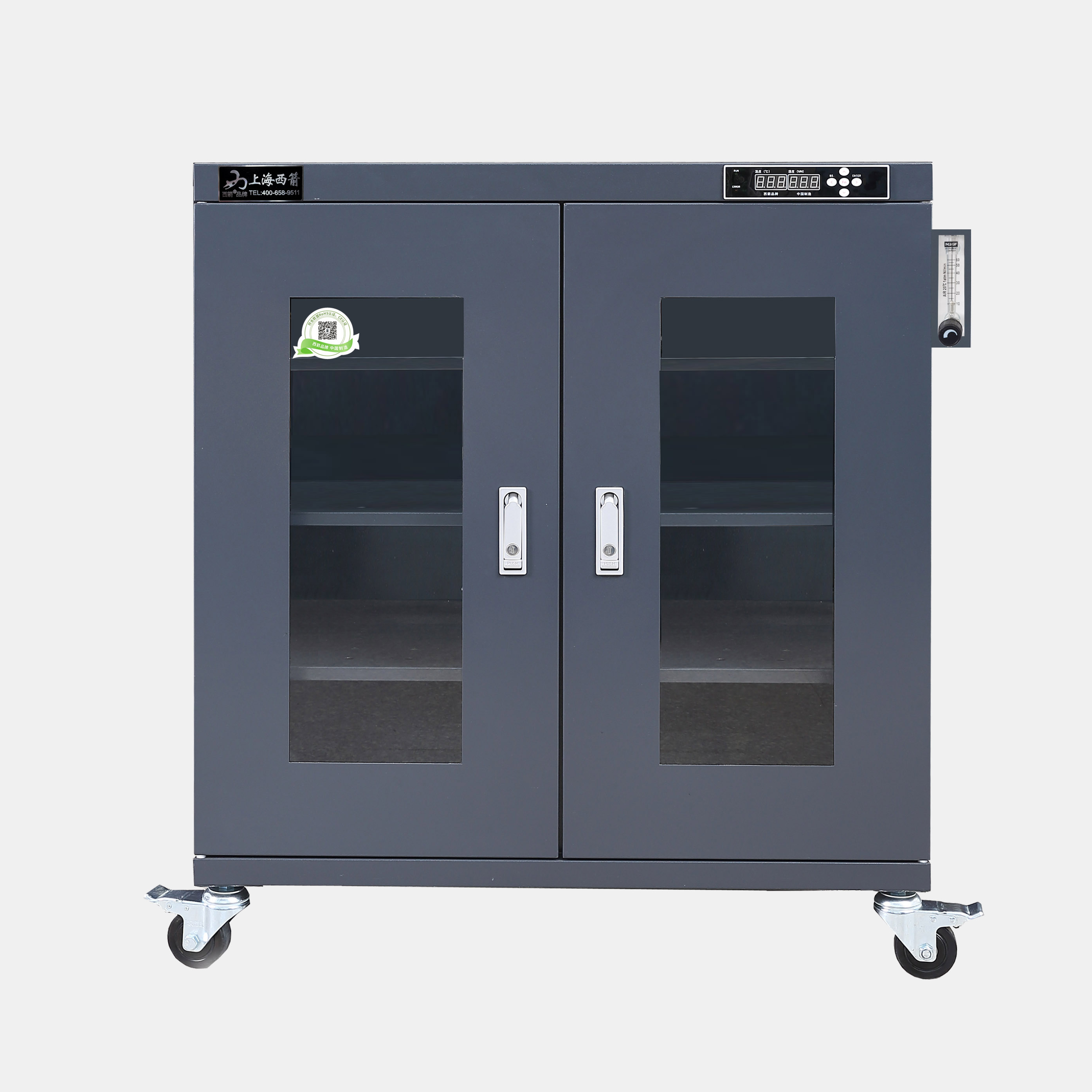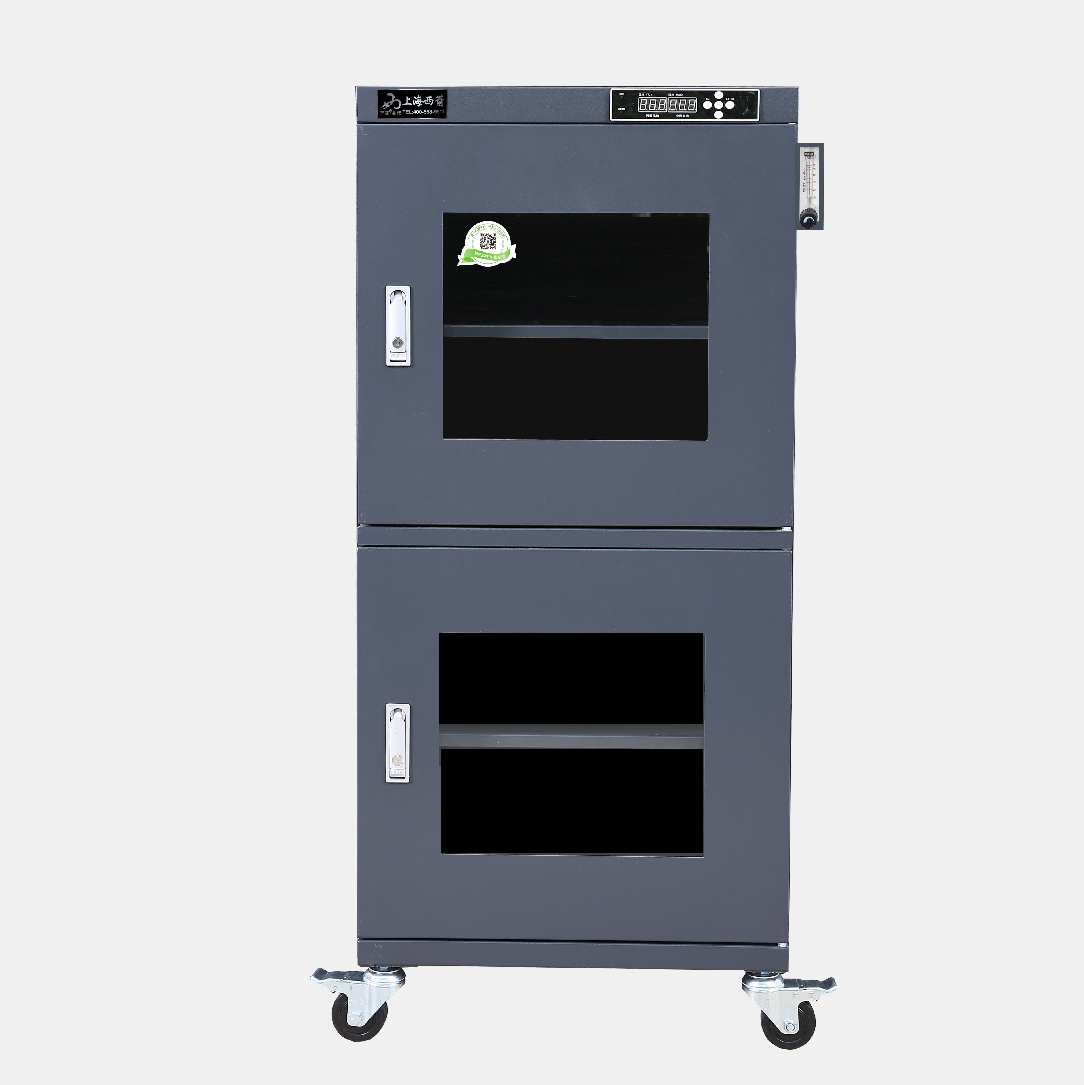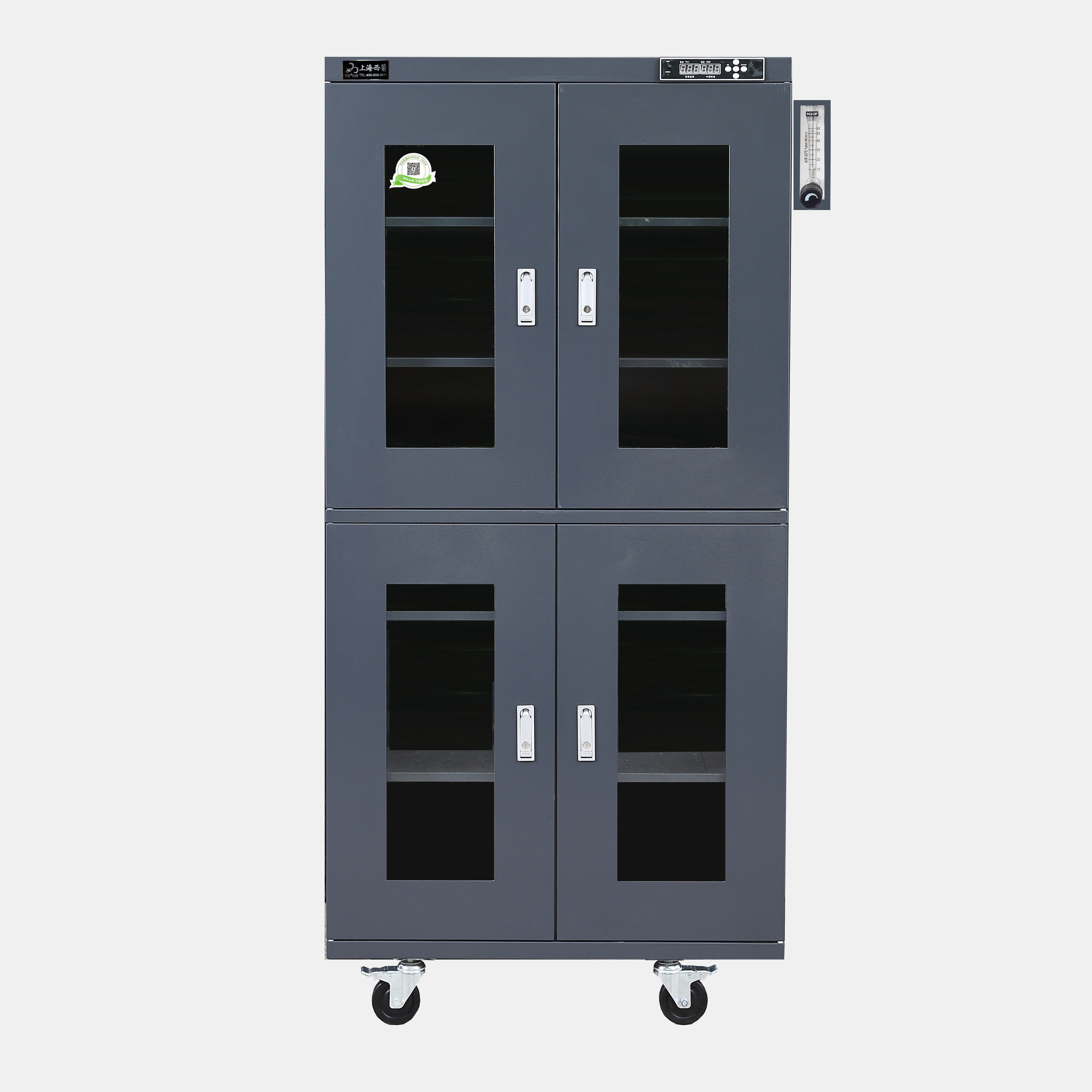 全系列產品可以選配加裝智能溫濕感應式報警系統,通過WIFI、GPRS通訊模塊與手機實時聯網,箱內溫濕度手機實時收到警報信息,通過電腦查看防潮箱溫濕報表。也可選配RS232或者USB串口與計算機連接,記錄溫濕度曲線數據變化。電子防潮箱可用于濕度敏感類材料的防潮保管,如IC等濕度特別敏感的材料存放,可選購防靜電,*銹鋼制作。防潮箱箱體保修五年,*生免費提供技術咨詢,并且可以根據客戶要求量身定制。